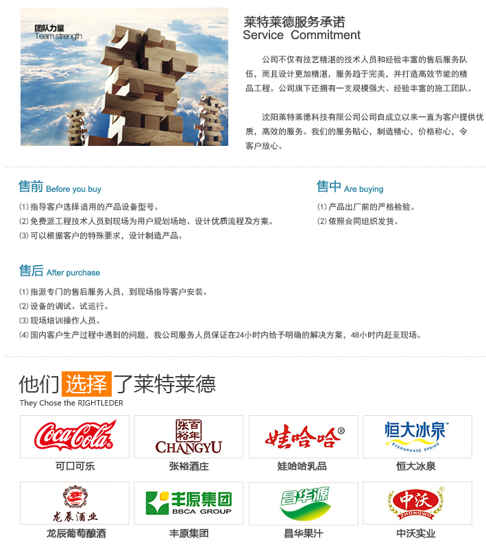鐵嶺某電力建筑安裝公司主要經(jīng)營:房屋建筑,生產(chǎn)龍賜牌純凈水,計(jì)算機(jī)零售等產(chǎn)品。作為經(jīng)營房屋建筑,生產(chǎn)龍賜牌純凈水的企業(yè),該公司始終堅(jiān)持誠信和讓利于客戶,堅(jiān)持用自己的服務(wù)去打動客戶。萊特萊德公司為其提供純凈水設(shè)備有效促進(jìn)了該公司的經(jīng)濟(jì)效益。